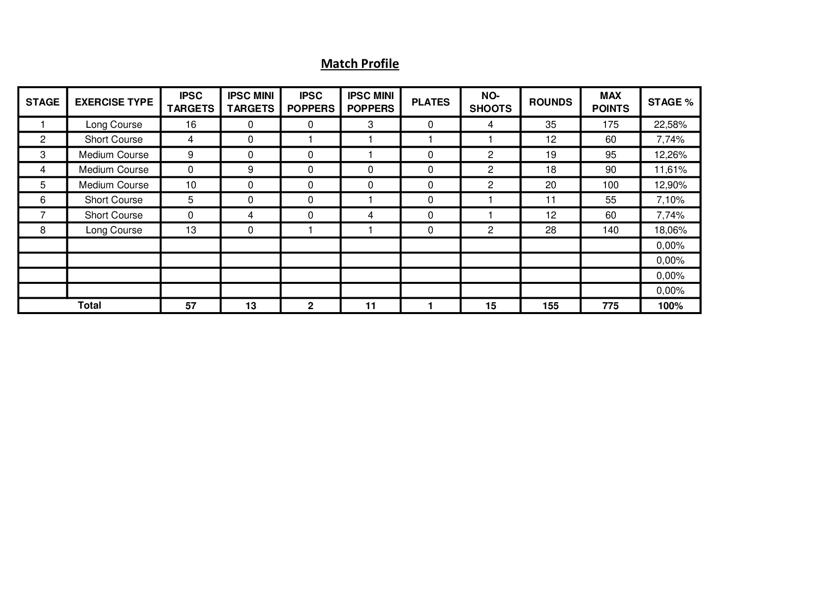 | SHOTGUN STANDARD | 32 | 2 | 3 | 3 | 4 | 3 | 15 | 2 | 5 | 4 | 12 | 7 | 4 |