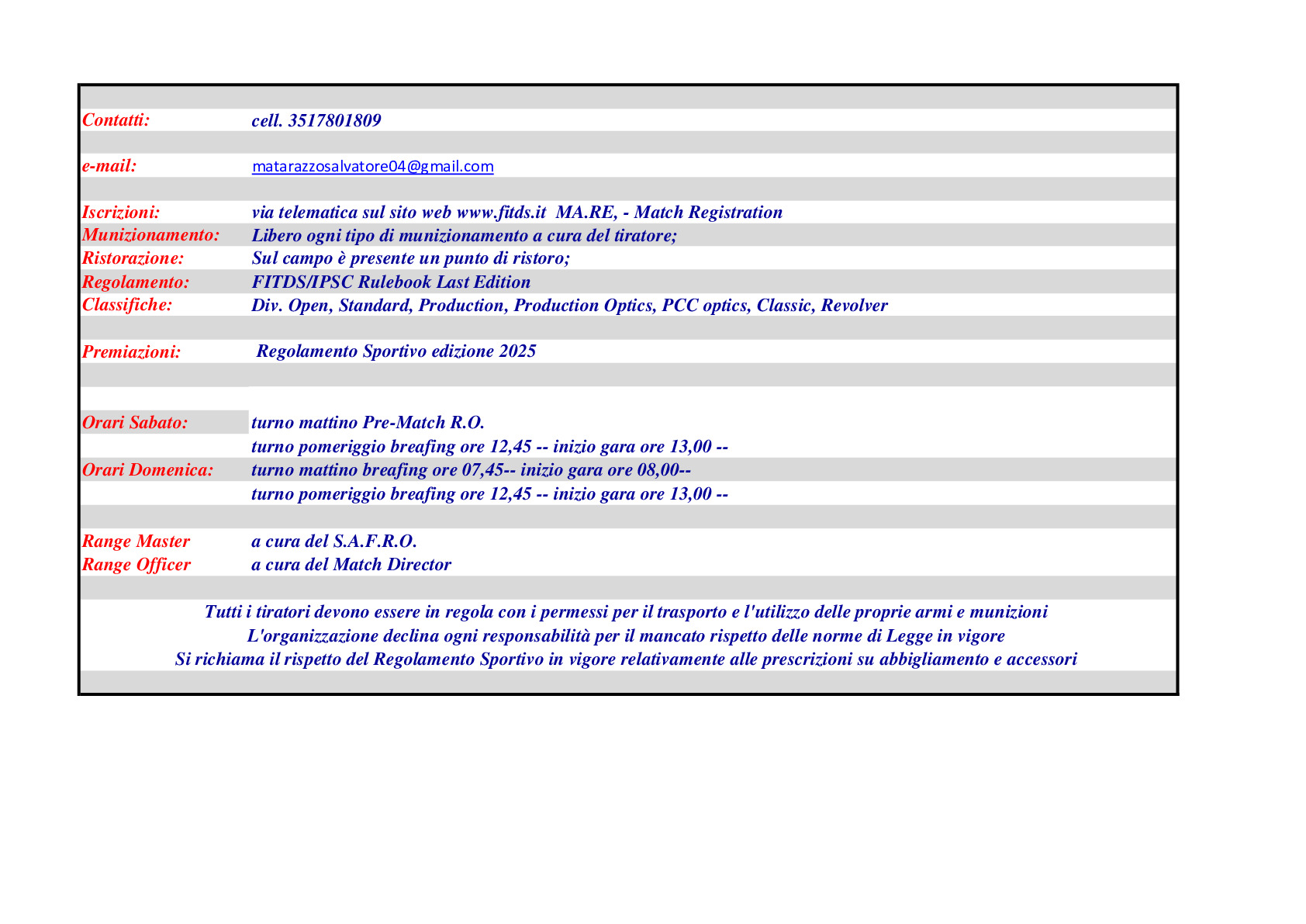 NB: Differimento competizioni sportive calendarizzate per il 26-27 aprile. Vedi comunicato